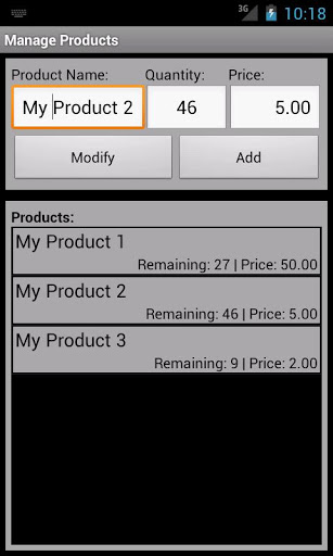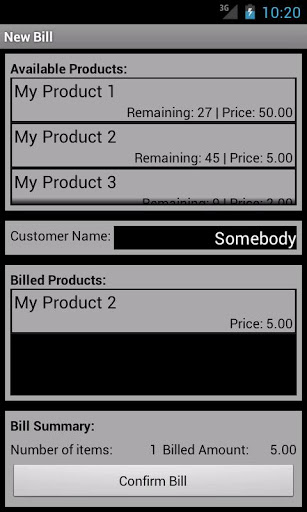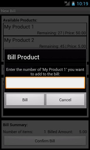 Manage your products right on your mobile device. Have a check on your inventory, update it, etc. Create bills on the go, add/remove products, save bills and much more.