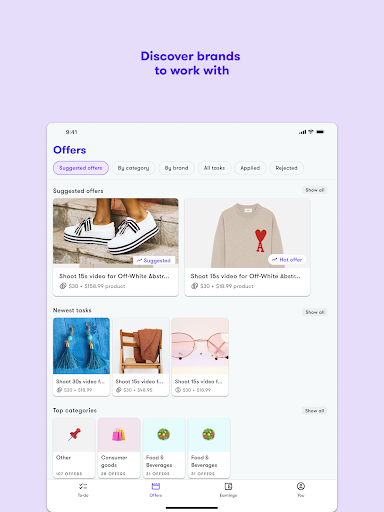 * Set up your profile and start exploring the brands you want to work with.