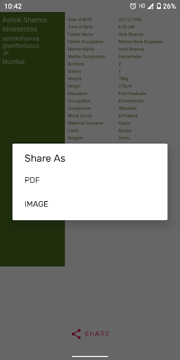 Bio Data Maker Android app helps you to create your bio data for marriage. In India, we create our bio data and send them to the interested ones so they can know more about us from bio data.