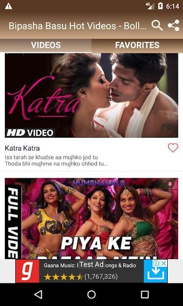 The Android App has video songs for Bollywood Actress Bipasha Basu, including Kabhi Khamosh Baithogi, Katra Katra, Chand Aasmano Se Laapata, Touch My Body, Fitna Dil, Bipasha, Piya Ke Bazaar, Ik Pal Yahi, Gustakhiyan, Chhodo Chhodo, Naam-E-Wafa, Mehboob Ki, Kya Raaz Hai, Lucky Boy, Sawan Aaya Hai, Beedi, O Jaane Jaana, Allah Duhai Hai, Small Town Girl, Pyar Ka Khumar, My Name Is Ali, Madno, Chaahat Ki Khushboo, Mere Saath Chalte Chalte, Kya Dard Hai, Hum Naa Rahein Hum, Deewana kar raha hai, Rafta Rafta, Zindagi Se, Mujhko Yaad Sataye Teri, Hamne Tumko Dil Ye De Diya, Humshakals, Rooth Kar Hum, Sajana Saajna, Khuda Bhi, Sawan Aaya Hai, Chand Aasmano Se Laapata, Katra Katra, Piya Ke Bazaar Mein, Mehboob Ki, Sawan Aaya Hai, Chaahat Ki Khushboo, O Soniya, Aetbar, Piya Ke Bazaar Mein, Teri Khatir, Aaja Nindiya, Zindagi Se Churake, Oh My Love Raaz 3, Namak, Gazab, Lets Rock The Party, Mohabbat Aapse Aapse, Paisa Hai Power, Aa Dekhen Zara etc.