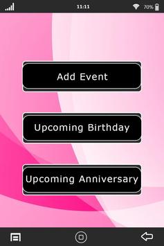 Don't miss a birthday, be reminded all the time or have the app greet them for you. This is a very simple application does that. It generates a list which contains their birthday based on your event information. Along with the basic information of birthday,