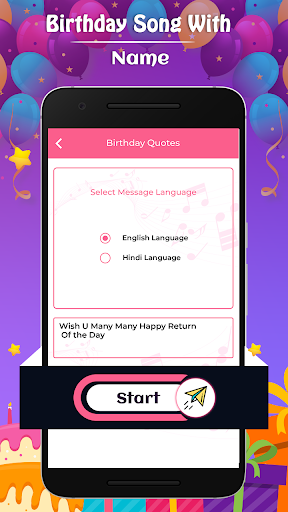 application. Get ready to make a special birthday song with name, this application is a special design to download your wish name birthday song. Application also provides users to share English or Hindi birthday quotes to anyone, you need to type a name and direct share it on your social sites.