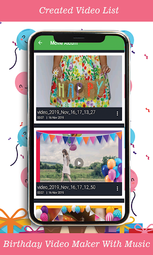 App given few offline birthday song so no need to download other song so you can create birthday video without internet. You can add perfect music from your mobile to play along the birthday video by using this Birthday Video Maker with music. Happy Birthday Video Maker app helps you to create Image Slideshow from your smart phone, along with slide time, frames and filter effects.
