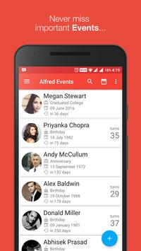 With a few taps, you can import your contacts from Facebook, Google and Phone. Alfred automatically synchronises all events and merges duplicate contacts.