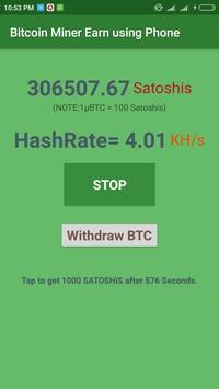 In every 10 minutes you can earn 750 SATOSHIS using 'Bitcoin Miner Earn using Phone' by clicking a button which appear in every 10 minutes.