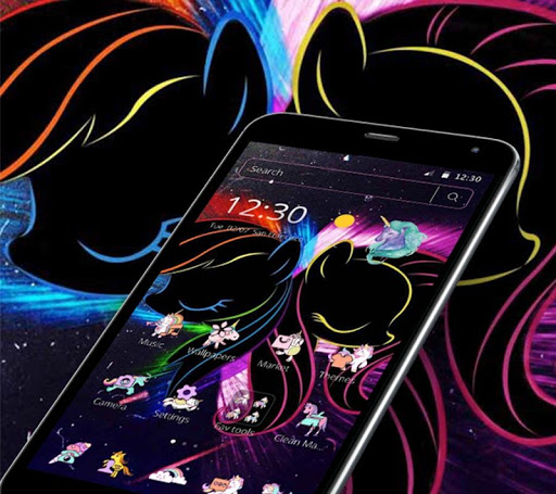 Do you love black unicorn in the zoo? Neon Unicorn are so cute animals we like. Now you can get 3D Neon Unicorn theme to decorate your phone all over with black unicorn for free.