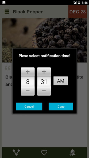 Download Black Pepper Daily, a beautiful designed, sleek simple app which brings you daily benefits of Black Pepper. Set your time, and receive notification at desired time of the day.