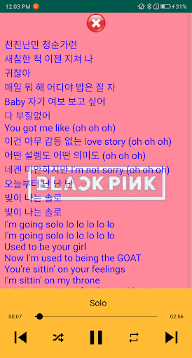 Blackpink song's application comes with lyrics in each song and this application can run offline (without the need for internet)