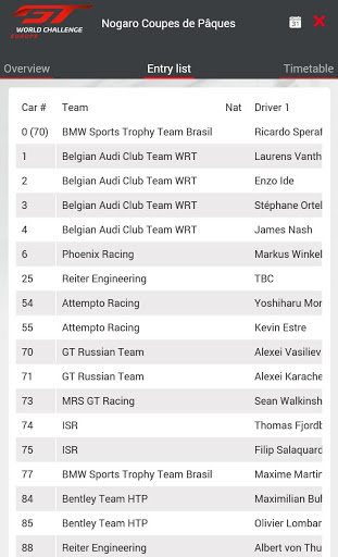 Download this App for free and keep up-to-date with all the news, events, video and photos from the GT World Challenge Europe. Plus race results, team and driver standings, cars, teams and driver information, facebook and twitter feed and information about the GT World Challenge Europe and it's partners.