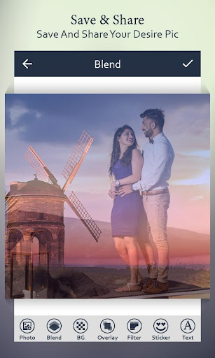 Blend Me Photo Collage is an application with features of photo blender mixer and overlay image effects. This applications allows you to select picture from gallery or take selfie from camera. Then apply ultimate blend effect and overlay effect on your desire pic. Application contains high resolution overlays and background collections for creative photo effect.
