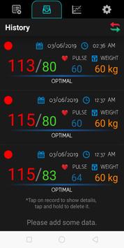 - You are able to enter your BP, weight & blood glucose data & view those records in graphs & lists.