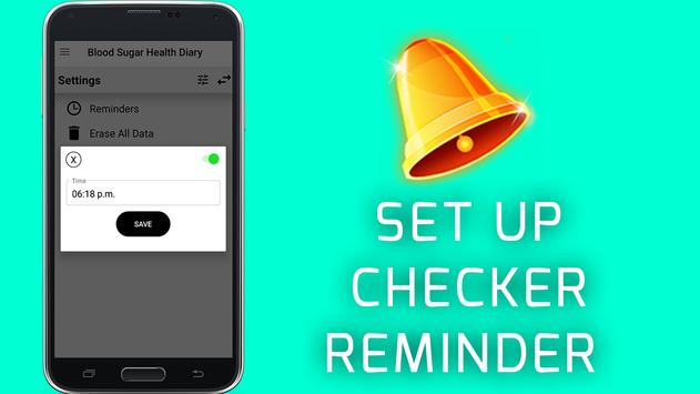 The user can setup reminders to check blood sugar level.
