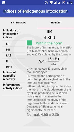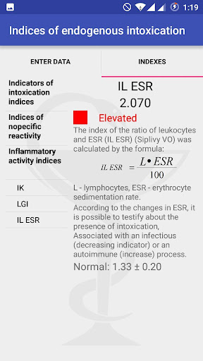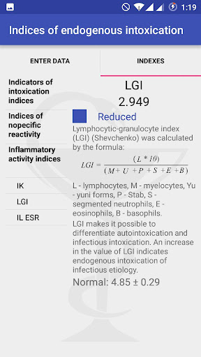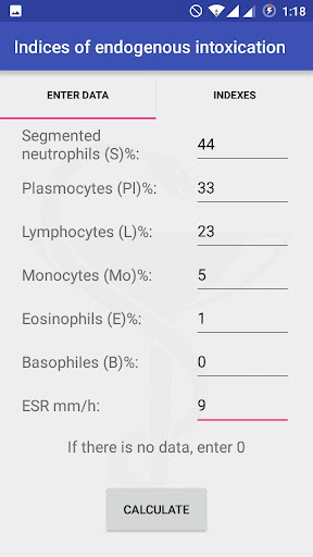 The application will quickly calculate indices of endogenous intoxication based on blood parameters and assess the state of health.