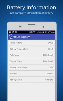 Blue Battery Battery Saver is a FREE battery saving app that makes your battery last longer, and can help you get up to 50% more battery life for your Android phone! Blue Battery- Battery Saver is World’s best power management tool, capable of extending your battery life, save power, & optimize your apps.battery saver is it is easy to use, kill extra processes, boost up your phone memory, speed up your CPU, clean your phone.