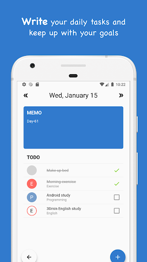 Blue Diary's goal is to strongly motivate you to achieve your daily tasks.