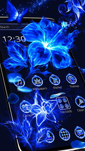 🔥 Glamorous Blue Ice Fire Flower Theme With Icon Pack & Animated Particle Style Effects Improves your device Looks.