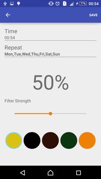 Wake up Blue Light Filter Night Mode automatically with alarm. You can easily filter blue color anytime, night mode.