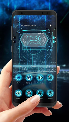 1. Blue Neon Future Tech is free, but only compatible with APUS Launcher. If you want to apply it, please install APUS Launcher on your Android phone. Or download new theme and APUS Launcher. When you install APUS Launcher, there are variety of themes in APUS theme & wallpaper shop, such as phonex, lovely unicorn, pink diamond mickey, Red heart, luxury, gold, business, black, simple, magic, comic, football, basketball, cricket, Valentine's Day, New Year, Halloween, Christmas, cute cat and dog, butterfly, dawn theme. Install APUS launcher to enjoy more themes.