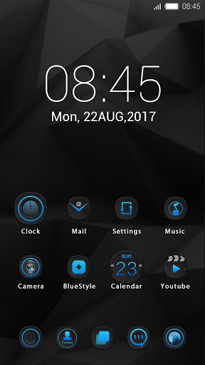 Super cool theme with clean black wallpaper, featuring neon blue icons, simplistic and futuristic theme.