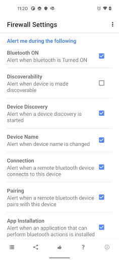 FruitMobile Bluetooth Firewall is the best Bluetooth security app for android. It guards your device from bluetooth hacking & ensures privacy protection. It runs as a foreground service which can be seen as a persistent notification, guarding your device all the time.