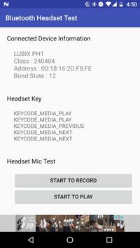 This Application for Bluetooth Headset Test. Show Connected Device information(Name, Class, Adddress ) Verify Bluetooth Button Key Event, Recording with Bluetooth Mic, and Play sj.okay@rabiaband.com