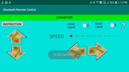 Bluetooth Remote Control is used as remote control for Bluetooth robot or Bluetooth car. There is an instruction of Arduino in app for writing code in Arduino and control your car or robot with Bluetooth Remote Control. Bluetooth Remote Control is handy and brilliant with light size. Bluetooth Remote Control can be used for different activities like moving car forward, backward, left right, switch on headlight, speed control etc.