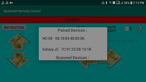 Bluetooth Remote Control is used for HC-05 Bluetooth module. Bluetooth module should be paired with android