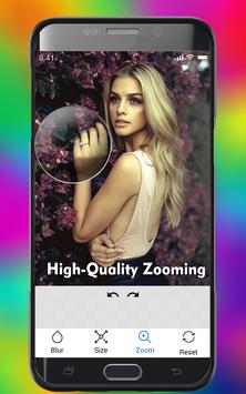 This is very important feature, from which you can zoom in/out to blur complex parts of image easily. Just click on Zoom button to enable zoom mode, adjust zoom and image position and click again on zoom button to enter into blur mode.