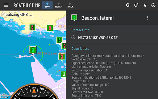 Navigation: BP is a great replacement for your traditional chart plotter tool and includes quality sea maps (charts), hundreds of thousands of navigation signs, descriptions, comments and much more.