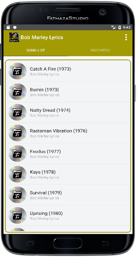 This is the most complete lyrics application of Bob Marley 2020 from the first album to the last album.