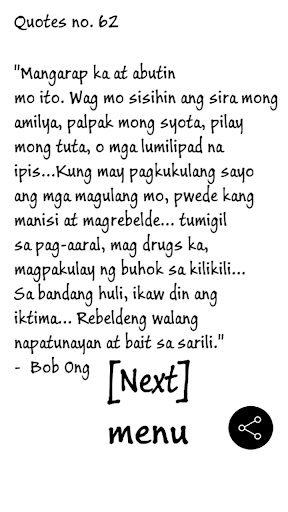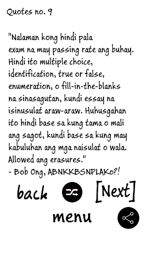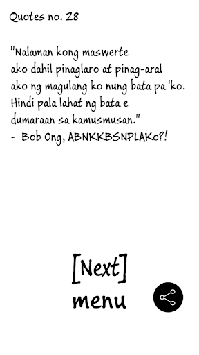 This app contains collection of some Bob Ong Quotes that can make you laugh, think, and literally change the course of your life. Enjoy!