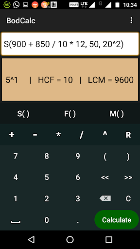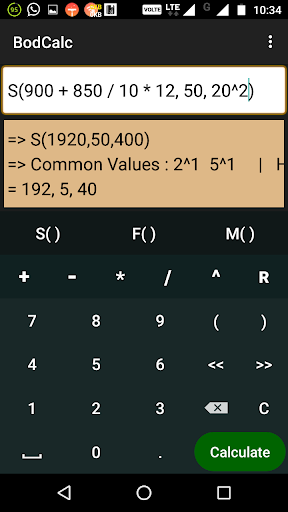 S( ) is another special function of BodCalc which is used to find the ratio among comma separated numbers. There is no limit on the number of comma separated values.