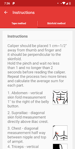 - 2. Jackson/Pollock 4 site skinfold caliper method.