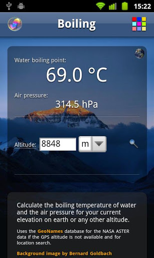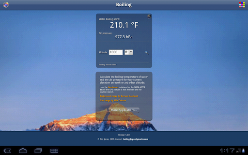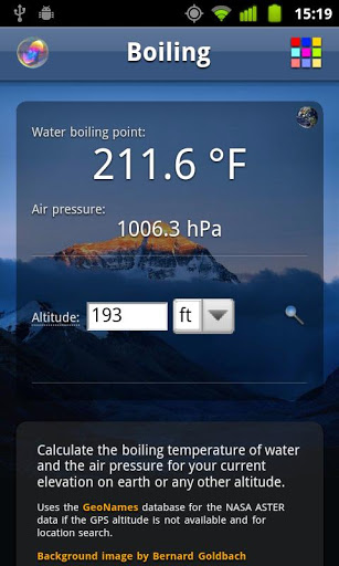 Calculate the boiling temperature of water and the air pressure for your current elevation on earth or any other altitude.