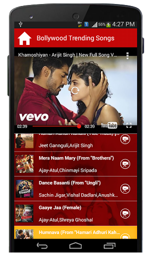 Bollywood Trending songs from Sony Music Catalogue for Free. Include best of the trending song play-list from movie like Dilwale , Hamari Adhuri Kahani , Brothers , Khamoshiyan , Zid , Ungli , Mr.X and many more.
