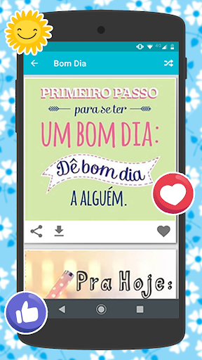 Com o aplicativo Bom dia, Boa Tarde e Boa Noite você poderá deixar o seu dia dia e de seus amigos e familiares mais alegres, tendo em mãos lindas imagens com frases de bom dia boa tarde boa noite 2020 e diversas outras categorias com frases para reflexão, motivação, alegria, amor, agradecimento, bíblicas, bonitas, dias da semana (segunda feira à sexta feira e final de semana) e várias outras opções de mensagens com atualizações frequentes.