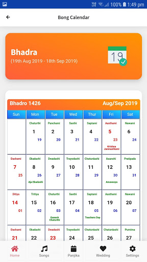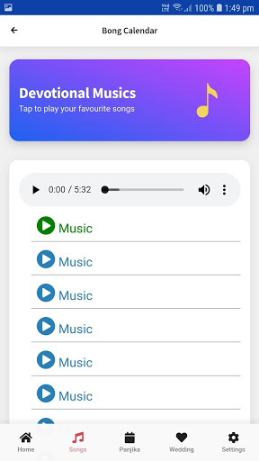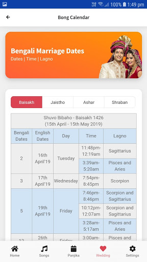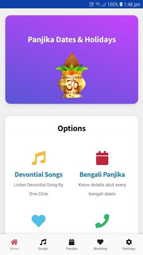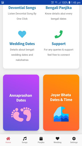This app intends to bring you information on Bangla Calendar, Hindu Wedding dates, Grihaprabesh times, Annaprahan times, High tide low tide time. Listen musics and many more.
