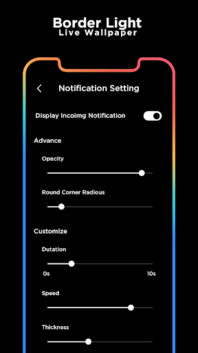 Border light live wallpaper. Best application to set border light live wallpaper. It gives awesome look to your phone. application has simple User Interface Design to understand and use the app. application is free to use and it has a large collection of all animated Edge lighting live wallpaper which all have different effects to make more fantastic your live wallpaper.