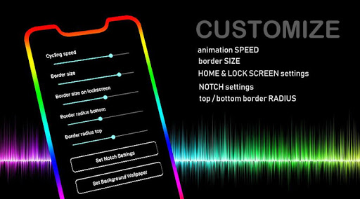 - Fully customise your Border light by changing type of notch, moving bottom & top radius to fit your screen.