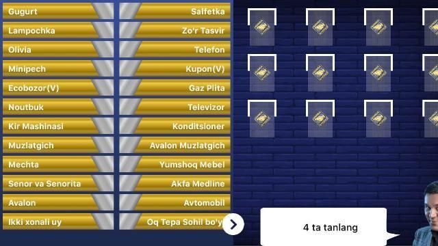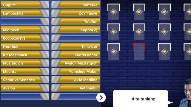 Boriga Baraka o'yinida o'z omadingizni sinab ko'ring. O'yin shunchaki xozirgi teleshouga o'xshash qilib tuzilgan. Sizga berilgan ro'yxatdan aytilgan raqamchalik yutuqlarni tanlash imkoniyati beriladi va ular o'yindan birma bir chiqib ketadi.