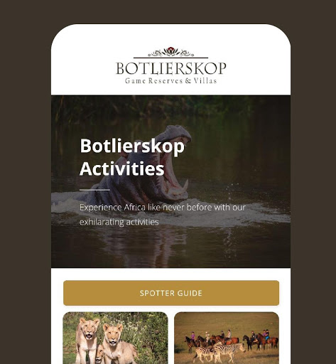 We hope you enjoy having this app as your pocket guide to the ultimate safari experience at Botlierskop Private Game Reserve.