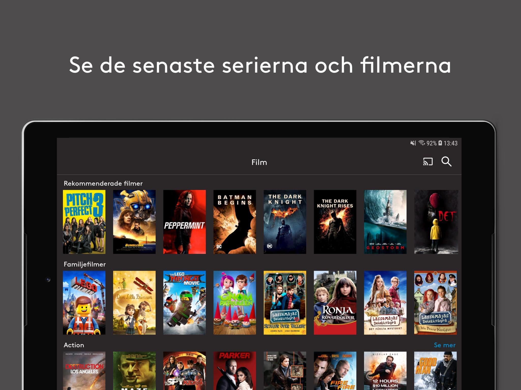 Vår streamingtjänst sätter dig som användare i fokus med oberoende rekommendationer och innehåll för både stora som små. Luta dig tillbaka i soffan, på bussen, under täcket och i (numera lugna) baksätet i bilen och låt oss ta hand om resten. Se de senaste filmerna och serierna, men även gamla godingar och klassiker. Titta ihop eller isär, två samtidiga strömmar för att slippa tjafs, fungerar såklart med Chromecast. Streama obegränsat inom EU, helt reklamfritt och utan bindningstid.