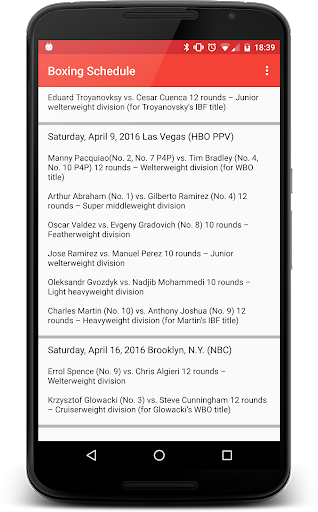 Quick and easy way to view the upcoming boxing fights/schedule.