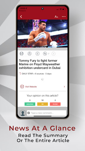 * Boxing news summary including stories from all lead sources. Clean feed with no duplications - see all sources that covered a story with a tap.