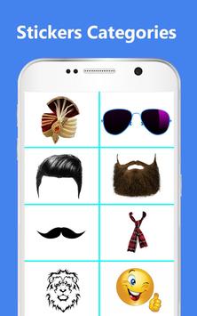 Boy Photo Editor has Eye balls, animals, rain, scarf, dog & cat, sunglass, smiley, love, miss you, photo frames, good morning, good night, happy birthday, birds, plants & flowers, men hairstyle, mustache, beard, turban and men hat stick images.