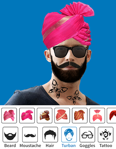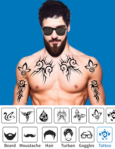 - Give your pic, a trendy look with accessories, using this men body photo editor and men makeup app.