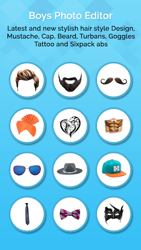 boys photo editor new version 2018 new app is specially designed for men, who are interested to be in a stylish look regularly. Every day you change your photo style with the use of amazing stickers like beard, hairstyle, mustache, cap, turbans, hat and goggles. Boys photo editor app works same like photo collage app. You can easily check which men hairstyle set on your face, will give you a stylist look to impress your friends.