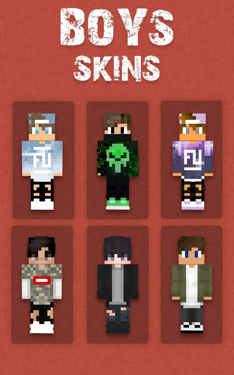 Boys Skins for Minecraft is an unofficial app. This app is not affiliated in any way with Mojang AB. All rights reserved. In accordance with http://account.mojang.com/documents/brand_guidelines