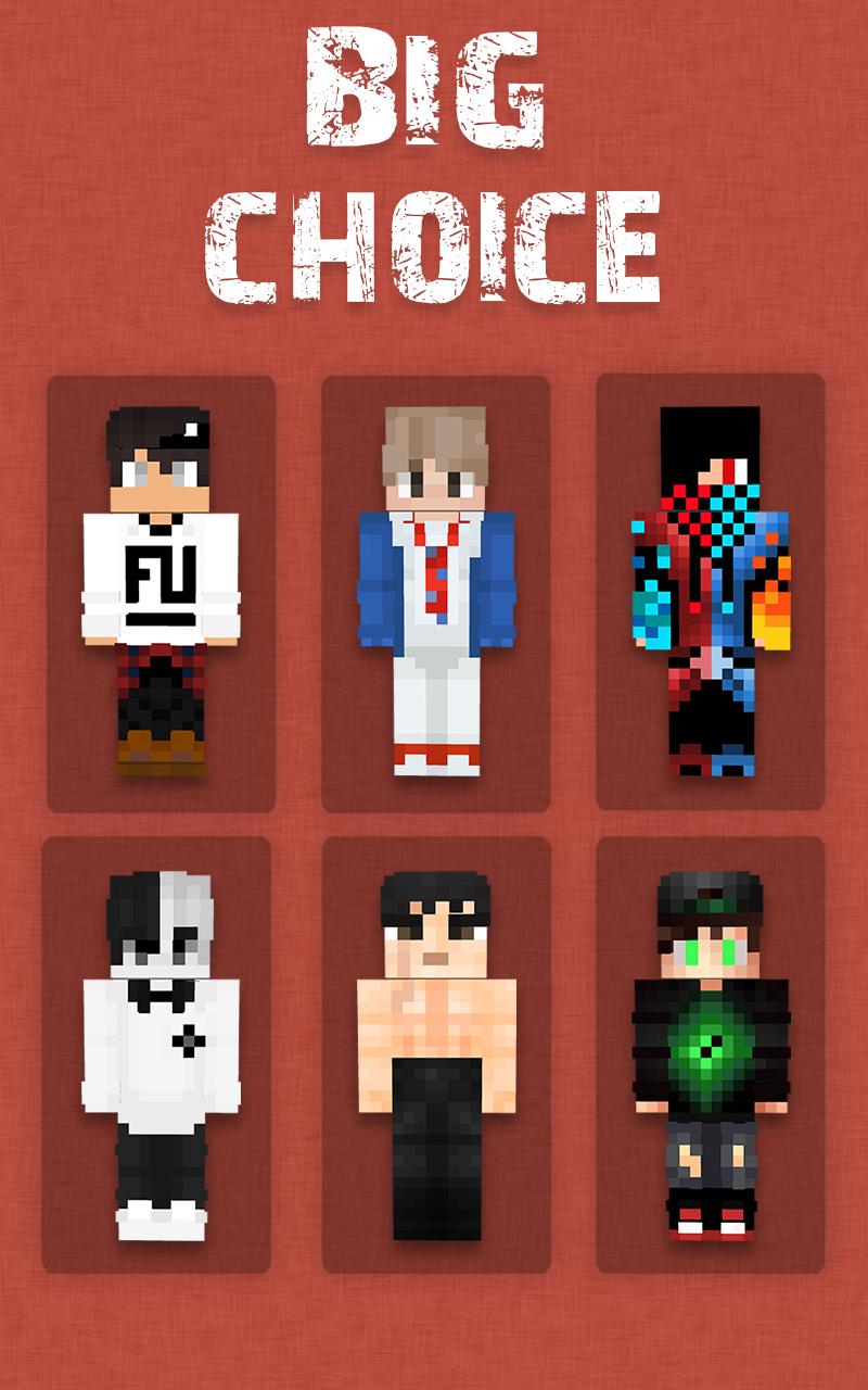is a great collection of top skins that are available absolutely for free. If you like to play Minecraft and are looking for a suitable boy skin that will emphasize your individuality – App Boys Skins for Minecraft is the best solution!