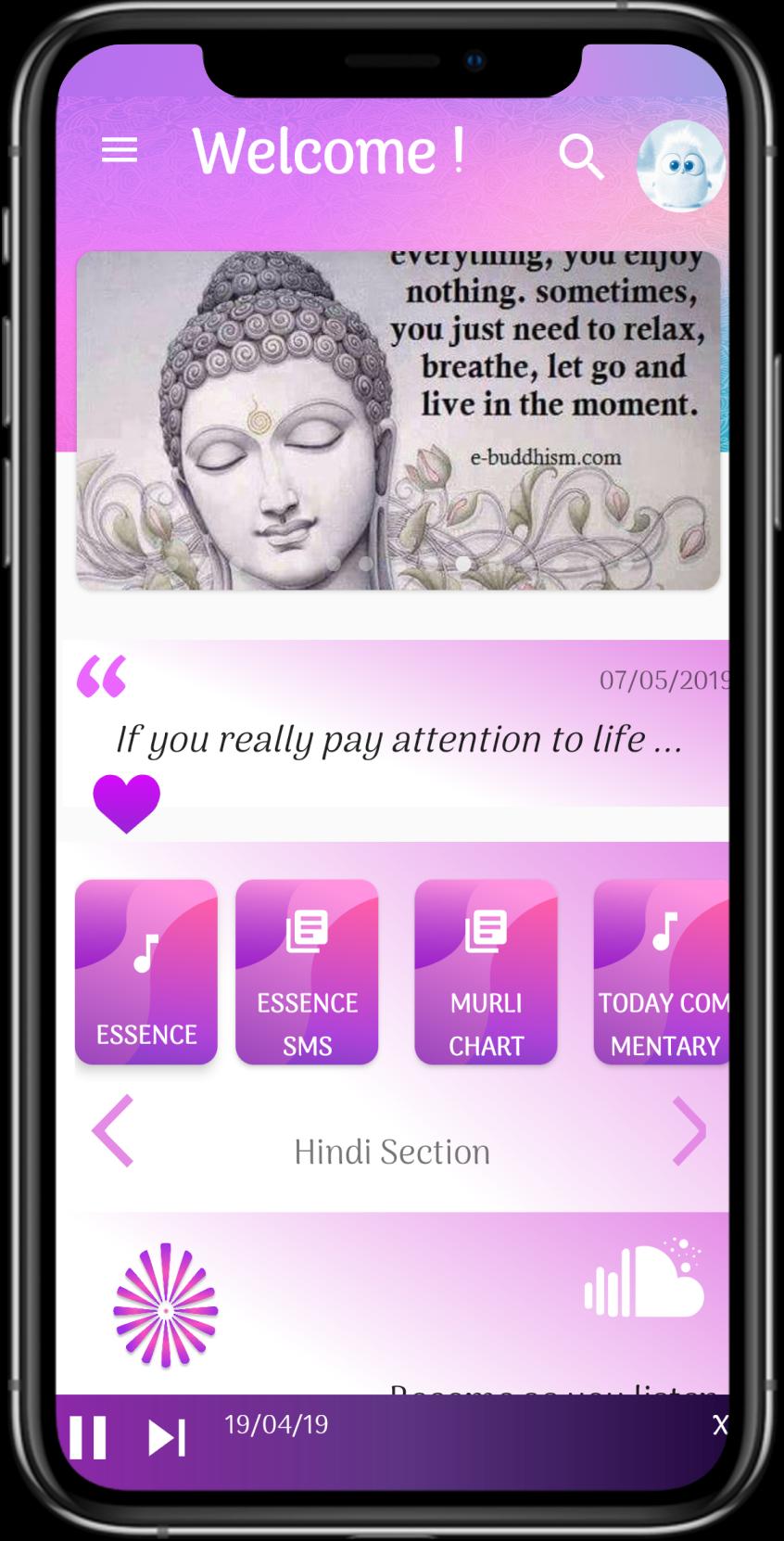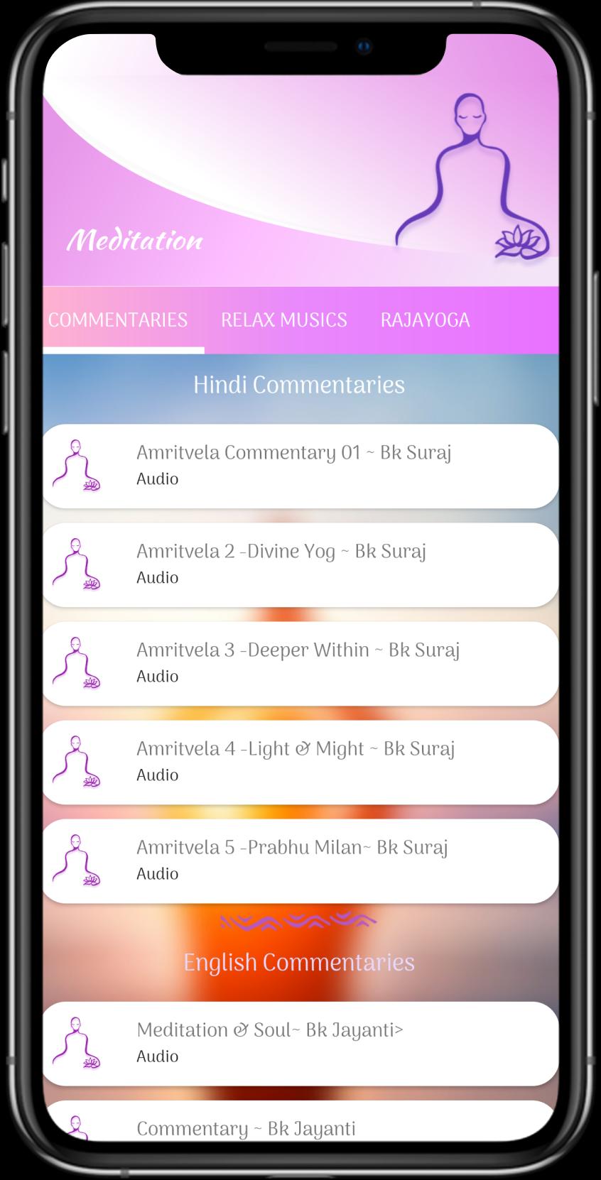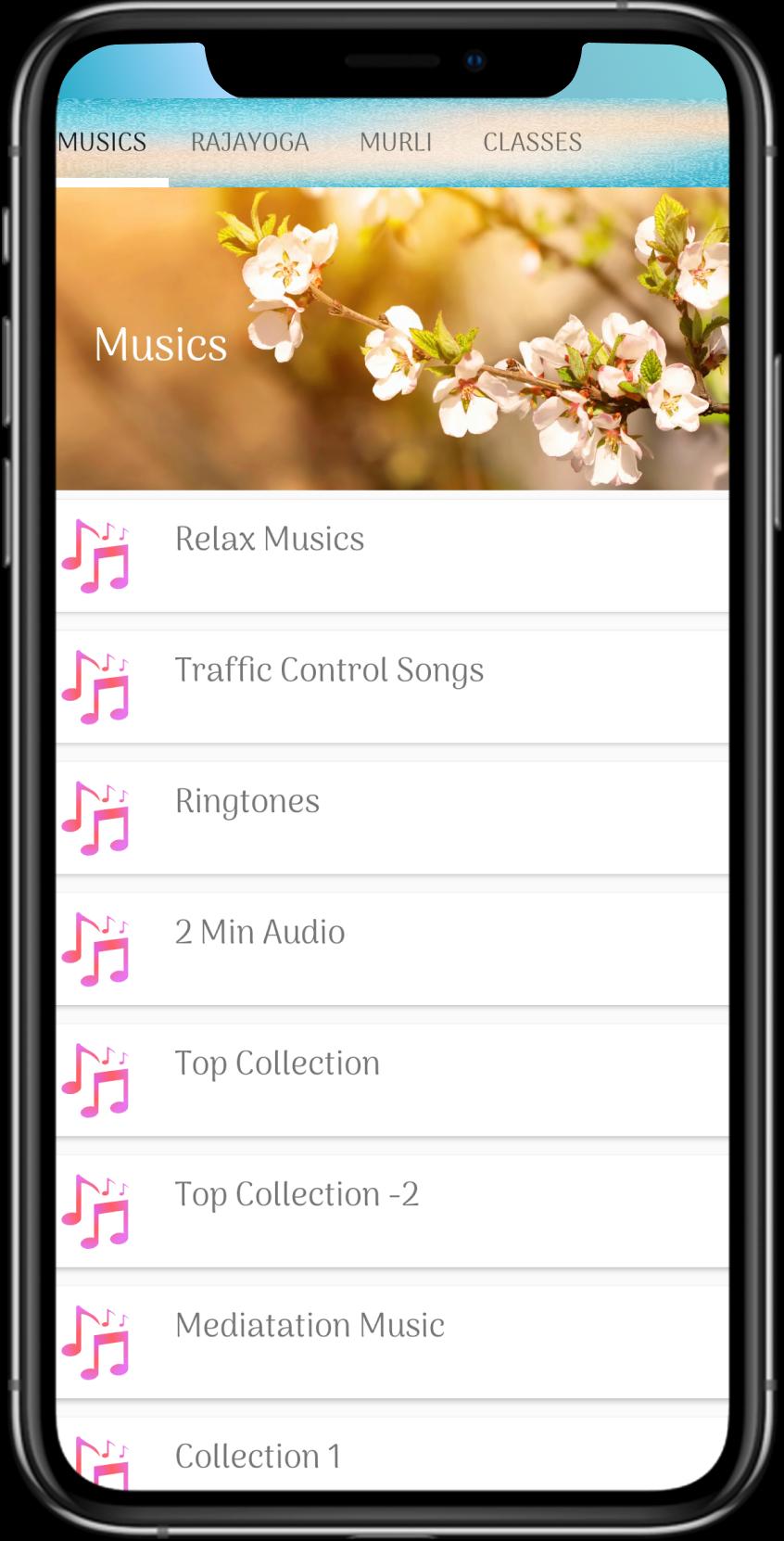 2. Resources - This section includes everything rest - RajYoga meditation music, relaxing nature sounds, BK songs, Classes, Sakar and Avyakt Murli audios.